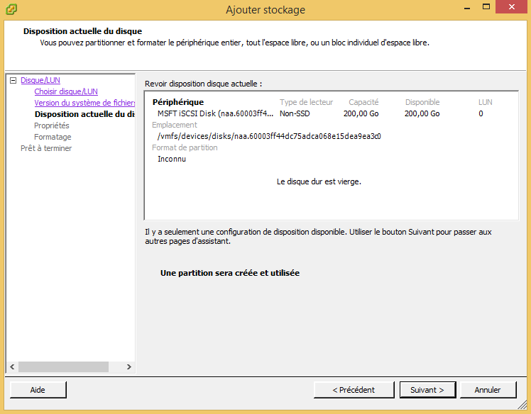 6) Sélectionner VMFS-5 ou VMFS-3 suivant vos besoins