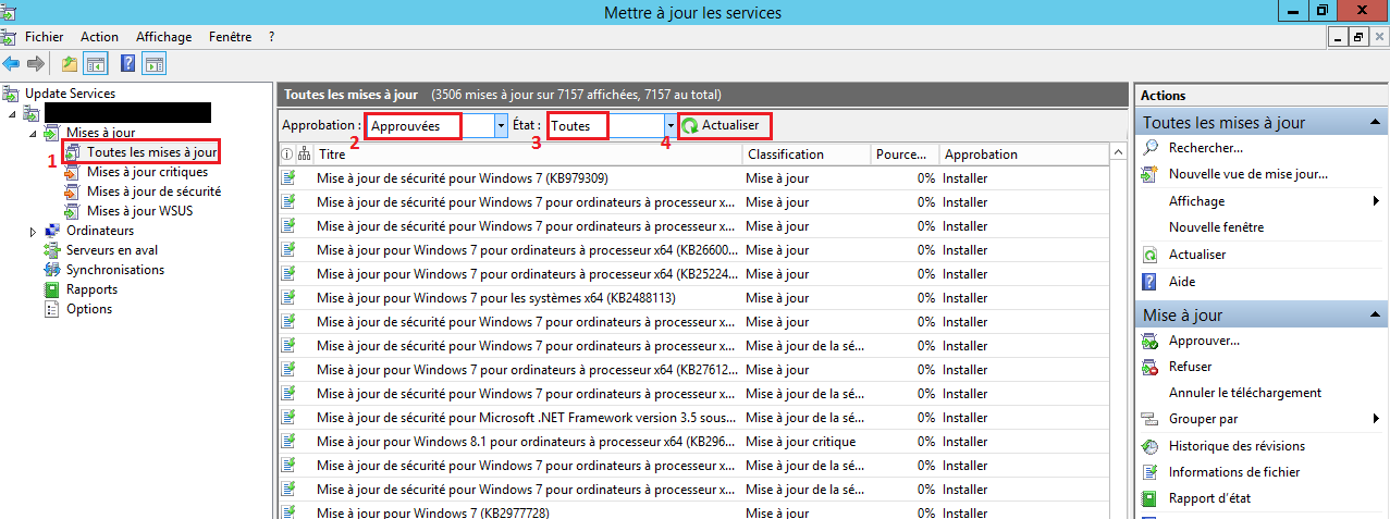 1) Ouvrir la console de gestion de votre serveur WSUS