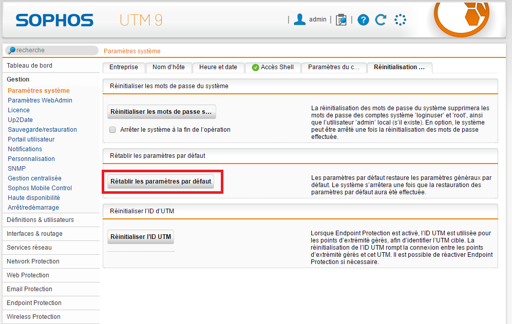 Dans cet article nous allons voir comment effectuer un reset (réinitialisation) de votre UTM en configuration usine.